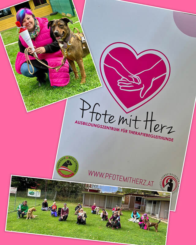 Und dann – das zweite Jahr: Aus dem vorsichtigen Hundemädchen ist eine selbstbewusste, staatlich geprüfte Therapiebegleithündin geworden! 🏅 Ja, unsere Honey – die, die früher vor Windgeräuschen gezuckt hat – geht heute mutig in Räume, in denen sie Herzen öffnet und Menschen zum Lächeln bringt.