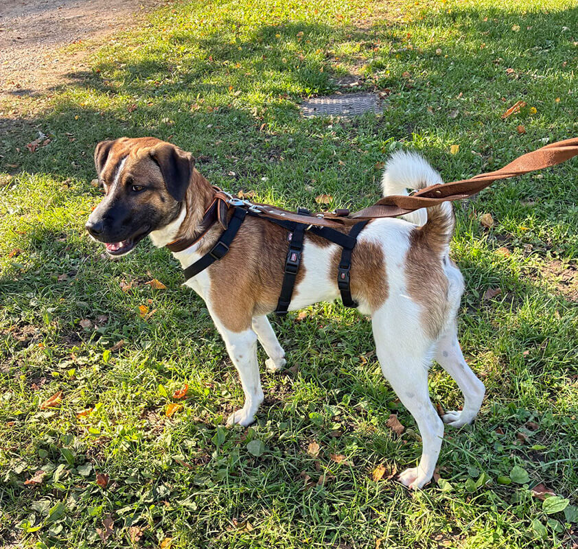 Er hat sich zu einem prächtigen Burschen entwickelt, der öfter von fremden Menschen "du bist aber schön" zu hören bekommt. Zu uns hatte er vom ersten Moment an totales Zutrauen (schon im ungarischen Transportfahrzeug in Hegyeshalom hat er uns heftig angewedelt), bei Fremden war er misstrauisch und furchtsam, das er in leichter Aggression ausdrückte. Das hat sich mittlerweile ungeheuer gebessert.