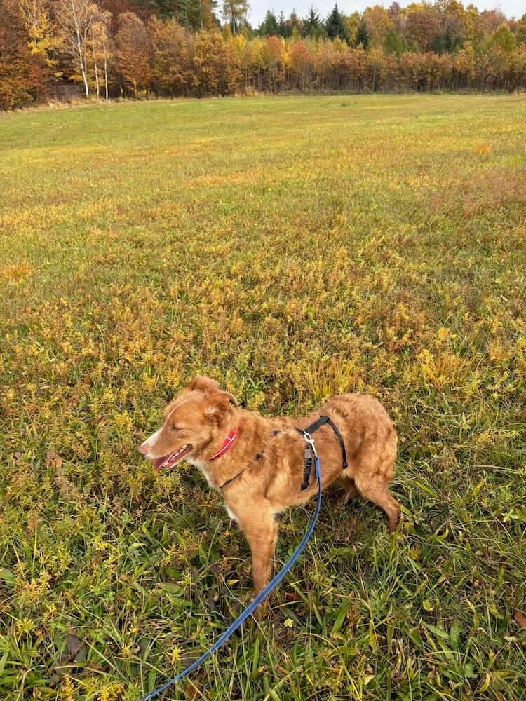 Seit seiner Ankunft in Niederösterreich blüht Dobby jeden Tag mehr auf und genießt sichtlich sein neues Hundeleben. Momentan ist er noch etwas schüchtern, da alles Neu für ihn ist, aber er ist sehr neugierig, will alles richtig machen und lernt daher rasend schnell. An der Leine geht Dobby brav spazieren, die Leinenführigkeit hat er überraschenderweise vom ersten Tag an beherrscht! Er geht an der Seite eines souveränen Hundes, der ihm Sicherheit gibt durch Wald, Wiesen, aber auch Siedlungen gerne spazieren.