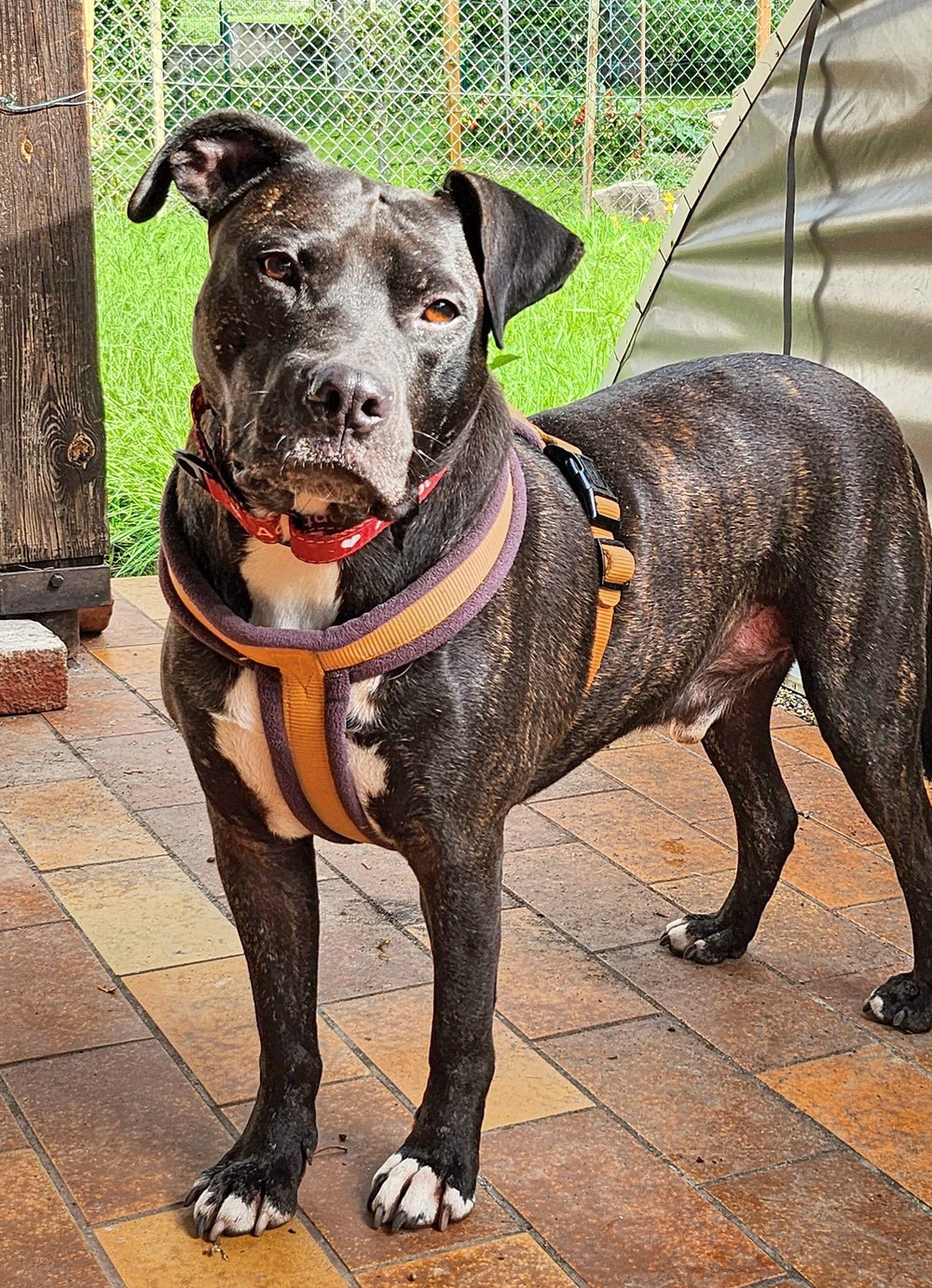 sehr lieb und menschenorientiert, fröhlich, anhänglich, verspielt, lernfreudig, kooperativ, anfangs zurückhaltendGrisu ist ein vermutlich im Juli 2022 geborener American Staffordshire Terrier Rüde, der zusammen mit seiner Schwester ausgesetzt gefunden wurde und im Tierheim unserer ungarischen Partnerorganisation Zuflucht fand. Er wurde in Österreich adoptiert, verlor jedoch sein Zuhause wegen eines Krankheitsfalls in der Familie und lebt nun auf einem Betreuungsplatz in Wien.