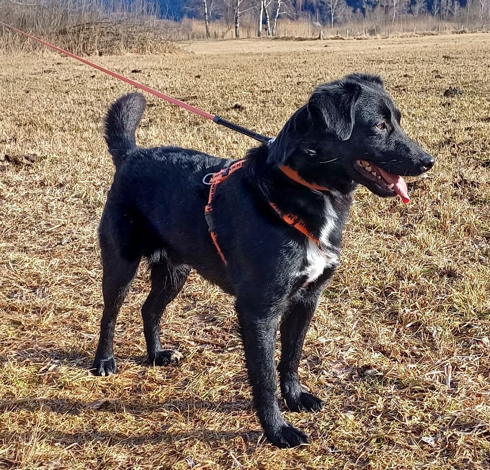 Nachdem er so lange Zeit in einem Zwinger eingesperrt war, ist er nun recht bewegungshungrig und würde am liebsten stundenlang spazieren gehen. Der Rückruf funktioniert noch nicht ganz, da er derzeit zu beschäftigt ist, alles zu erkunden. Er ist stubenrein und fährt problemlos im Auto mit.